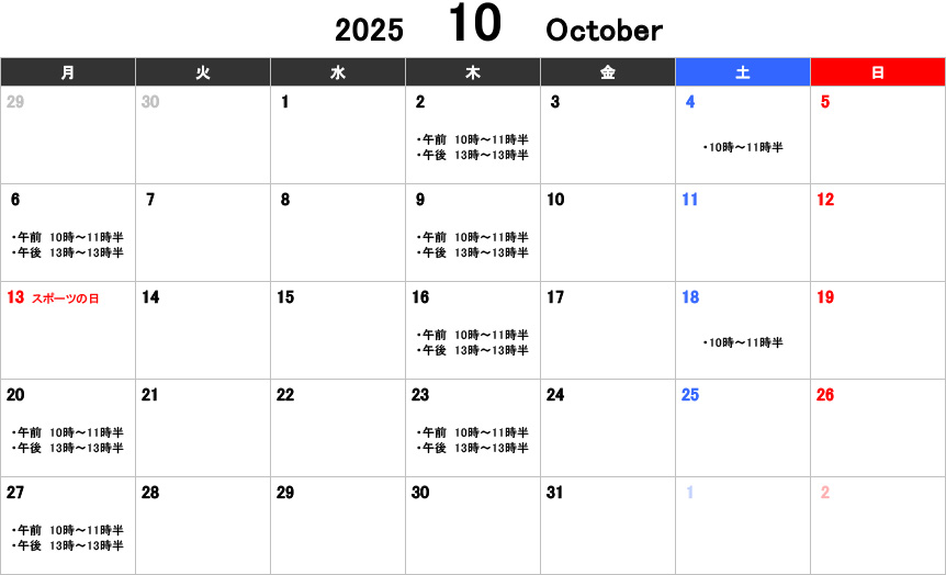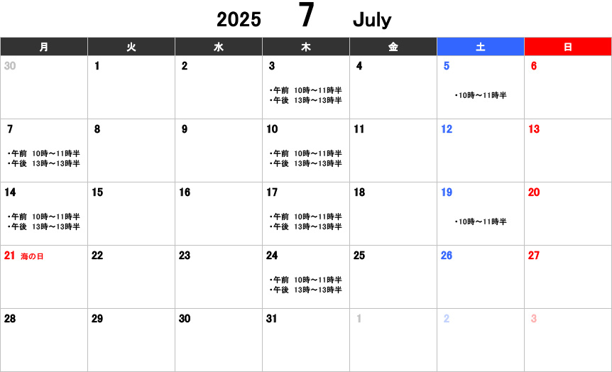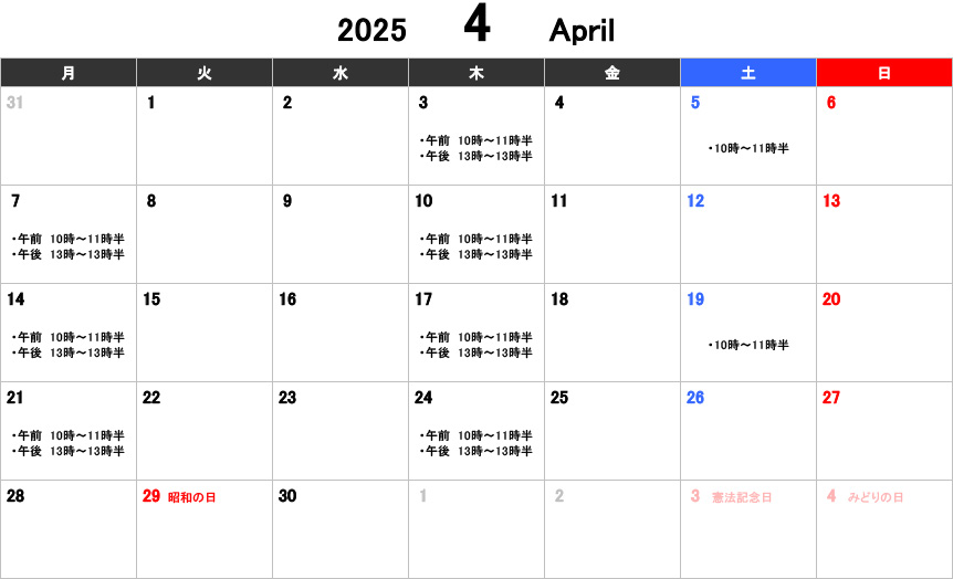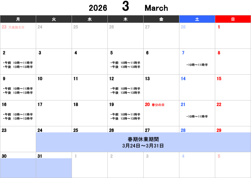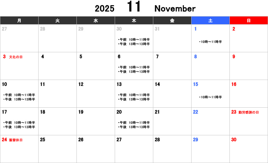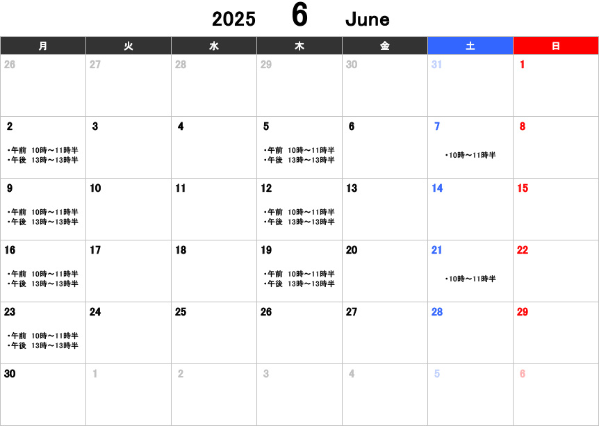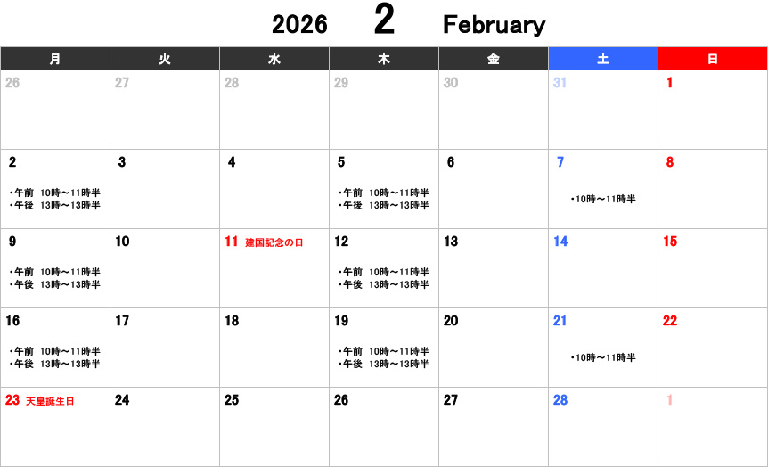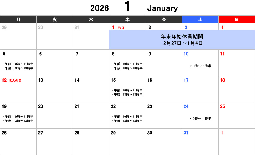 【大人】お稽古カレンダー